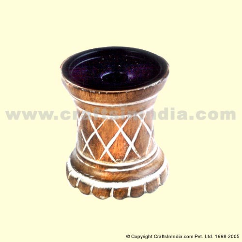 Antique Finish Wooden Candle Holder (Round Shape in Brown)