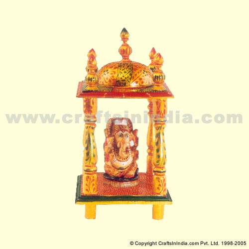 Wooden Mandir with Ganesha Painted