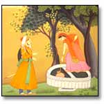 The painting style of Sitaram, eldest son of Nihal Chand closely resembles to that of his father. His notable works are ‘Krishna offering a garland to Radha’, ‘Krishna holding Radha’s Odhani’ and ‘Diwali festival’.